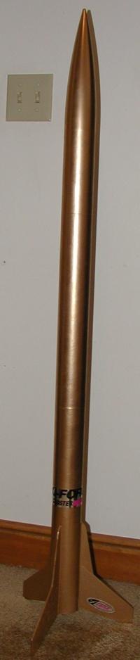 I didn’t go to any extremes of filling in the spiral weave of the body tube, or the joints between sections. I did use MinWax sanding sealer on the fins (a lot cheaper than AeroGloss, requires over night drying versus about 15 minutes though). For painting, my 7 year old decided it would look good in gold, a trip to Wal-mart yielded a spray can of brass finish that looks pretty good - could probably use a second can to get it really shiny though.