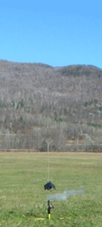 My second flight was on an Ellis G35-6 with the BP removed. Got this one on the camera! Very, very, cool! The G35 just kept pushing the rocket upward. Nice long burn. At the top, it too turned over in a lot of delay smoke. Recovered very close to the pad!