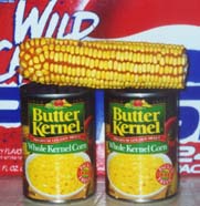 Find a decent sized ear of corn and strip all of the kernels off. Next, cut a strip of cardboard approximately 7.5" long and 3/4" wide. Finally, remove the labels from the cans of corn.