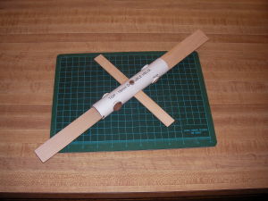 This build is similar to that of the 18mm Helix Monocopter so I recommend the reader read that review. The build only requires Elmer's Glue All, and an X-Acto knife with a new #11 blade. Unlike the monocopter, you actually have to cut wood. One slab of basswood forms the two wings and balance beam. You also have to drill a hole in the beam so the lug can pass through it. This step is not that critical and you could just cut the hole with your X-Acto.