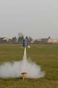 If you know of a lighter clear plastic than plexiglass that can be worked with, I would love to know about it. I’ve tried CD jewel cases, but they are so brittle that they shatter if you try to cut them. My current thought is to borrow an idea from Dr. Zooch’s flame fins that he uses to stabilize his Space Shuttle and Ares rockets. You could make a 37mm extension to the base of the rocket with nice light corrugated cardboard and glue some nice light balsa fins to it. The motor mount could be glued to the base and the tube of the baffle could be extended to reach to the base of the TARDIS proper. (You would have to make the tube in two pieces so that you could punch the holes in the middle.) This extension base and fins could be painted matt black to reduce its appearance on the launchpad and in flight, and could be removed for display purposes. The additional length would also help to stabilize the rocket. Maybe that will be my TARDIS’s next regeneration.