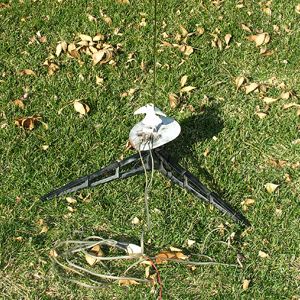 All three launches were on 1/2A3-2T motors. Boost wasn't pretty--some spin and lots of wobble. There was clearly some tendency toward instability in at least one flight. A stratosphere-busting altitude of 50-60 feet was achieved. From there, tumble recovery onto the grass was not a problem. I should mention that I have also built a 13mm Delta Saucer stock, and it flies flawlessly (plus you can launch it from a small back yard!)