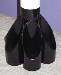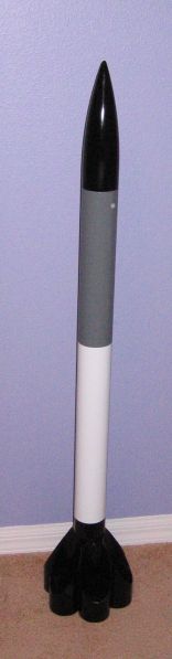 Primed the entire rocket with Kilz first and then laid down all of the colors with Krylon gloss spray paints. The Kilz was particularly helpful in getting a relatively smooth surface on the inside of the tubes as the paper readily absorbed the moisture of the paint, needing more sanding than what's typically required to get a smooth finish. Painting the fins was a lot trickier than I had thought it was going to be. It took quite a few light coats to get in all of the nooks and crannies in and around the tube fins.