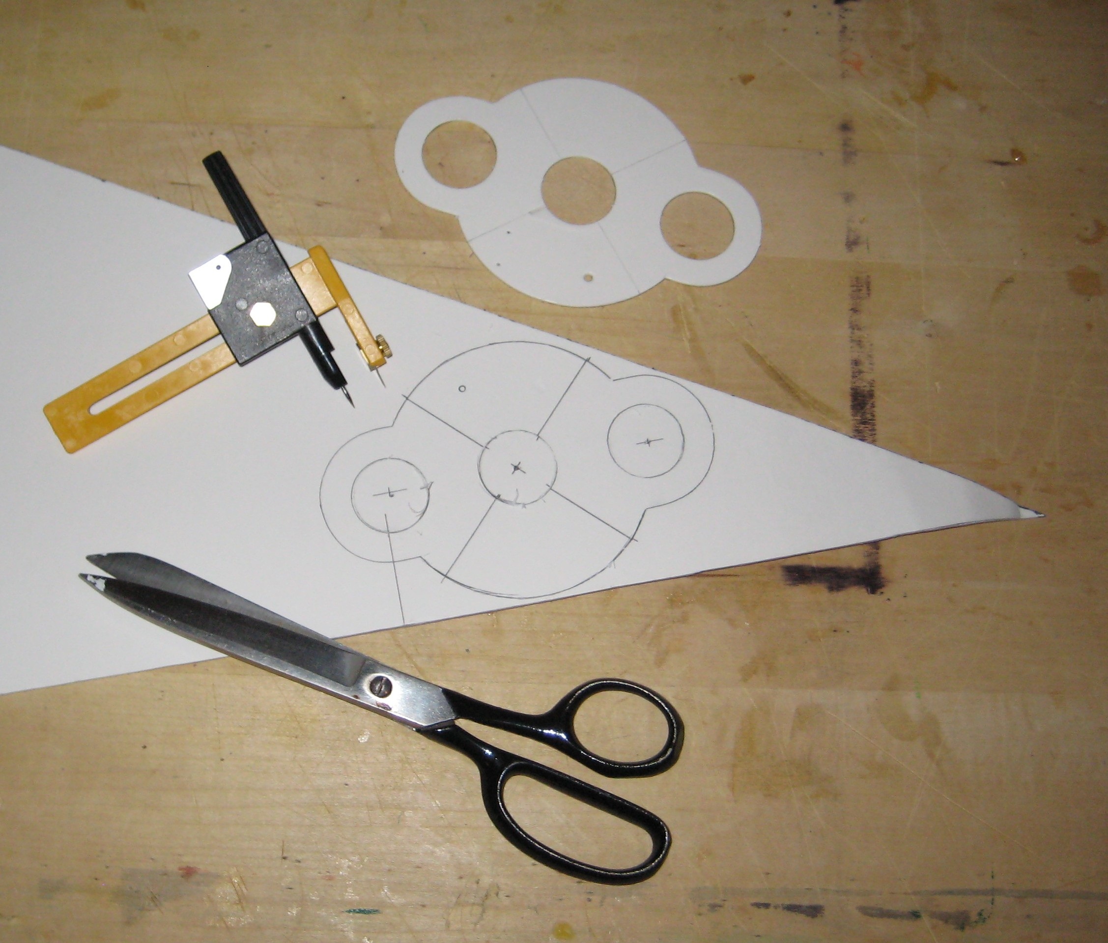 The first step is to mark where the four fins will go on the aft cardboard bulkhead as shown in Fig. 1. I made a backup pattern in case something went wrong.