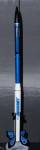 The Quest Gamma Ray is a small payload rocket designed to fly on 18mm (A,B,C) motors. It does fly well. It's main unique feature is a payload section made with translucent red plastic. The payload section's diameter is larger than the rest of the rocket, so it uses a transition section ... [More]