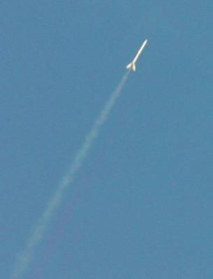 A good streamer let it fall at 15 mph and the flight was over in 24.9 seconds. The first stage landed at the launch pad, the second stage landed only about 120 feet away.  The booster motor was about 1/3 out the rear of the rocket – almost was ejected.  The recovery opening of the body tube, weakened from the previous wreck and reinforced with some paper, was partly ripped outwards by the Mylar streamer ejecting (lucky it didn’t get caught in there).  Now the tube opening needs some serious re-construction to fly again.