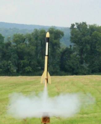 The Big Bertha: Is a very old model built in the 1970s by my brother. Very popular model, you probably have this or one of its many derivatives yourself.  This rocket is the classic '70s kit. It is big, fat, slow flier with a retro look. This one isn't retro-"looking" though; it's the real retro thing.  It is painted in the original mid-70’s catalog scheme, but with a lighter - more 50's style - cream yellow. I would prefer the newer all-black look Estes is showing now, or maybe some red/white/blue patriotic scheme.