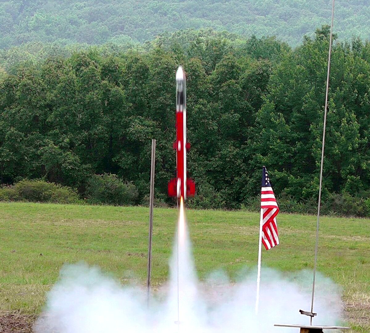 The D12 lit up fine, initial acceleration was a healthy 12.5 Gs, and the 1.8 second burn averaged a stout 3.2 Gs. The trajectory was super-straight up, a good thing for later camera flights.