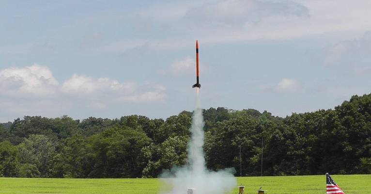The Renegade: It is a very old model built in the 1970s by my brother. The Renegade is a classic '70s kit. Not at all like the modern Renegade; this is your father's Renegade. This is a large, tall, D-powered model, finished in the original catalog paint scheme. Build credits for this kit actually go to my brother. I modified it by adding my usual altimeter payload bay ("Iris"). This adds 4-1/2 inches to the rocket's length and 17 grams of nose-weight. I also replaced the Estes plastic parachute with a better nylon cloth parachute, and use a Nomex cloth instead of wadding. After an Iris test flight with a D12-5, I’m going to load this baby up with a Aerotech E20-7W engine and push the boundaries of rocket power (for me, anyways). This model reaches about 500' on a D12-5, but on an E20, I would expect at least 1000'. (Iris is named after the Greek god of the rainbow. She is a messenger of the gods, linking the gods with humanity.) This rocket has flown higher than William Penn on top of the Philadelphia City Hall building, NASA's VAB building at Cape Kennedy, or the Cologne Cathedral in Germany.