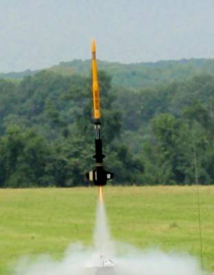 The Vector Force: The Vector Force is a modern Estes kit. This was my first model I made as a BAR. It had very good quality balsa fins on my kit, thick and sturdy. You can see the design is inspired by air defense missiles. It is rather tall, but somewhat heavy because of the two reducers. Because it has two reducer stages it has two separate payload tubes. Estes tells you to glue the payload tubes, but why? Good idea if you want to be sure the rocket doesn't separate in flight, but why waste two very nice payload bays? I just make sure they are always good and tight with some masking tape. Mine is painted school-bus yellow and gloss black to better match the included decals. I added about 3 heavy coats of clear coat for a really deep shine. String stability tests with a C motor required about 20-ish grams of nose weight, but now it flies really straight up - provided there is little wind. The top payload tube has vent holes for a barometric altimeter. I've recorded flights in excess of 400 feet with C6 motors. This is my current go-to flagship rocket. I have tried some test flights with composite D engines, to see if I could kick this puppy past 1000 feet. It sure did! In the process, the shock cord was torn out from the mount. This model was repaired by installing a custom ejection baffle with a Kevlar shock cord attachment. Now I think she'll hold up to a few more D-powered launches and ejections. This rocket has flown higher than the NY Times Building in NY, and also the Chrysler Building including the pinnacle, and the Bank of America Plaza in Atlanta.