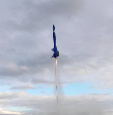 Unfortunately it had a 4 second delay on the motor, so it continued down almost as fast as it went up, reaching an average speed down of 22 mph. At a mere fraction of a second before impact, the ejection fired and the chute opened up, but there was no time for the parachute to slow it down. The main body tube drove itself into the ground taking about a 1-inch core sample. The entire flight was over in 5.5 seconds.