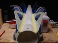 Filets done and rough sanding. The G-Flex and Cabosil sands fairly easily. I will slightly round over the fins with 120 grit.