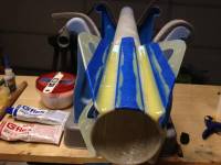 Let the epoxy run over the forward and aft parts of the fins, this will help when "moulding" the fillets.