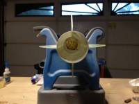 Fin mounting prep. The fin tabs will be flush with the inner tube (or bout) when mounted. I test fit the fins before epoxying. The fin slots were a bit on the narrow side. I used a drill bit that just fit into the slot to SLIGHTLY open it up by moving the bit by hand back and forth inthe slot. Do ... [More]