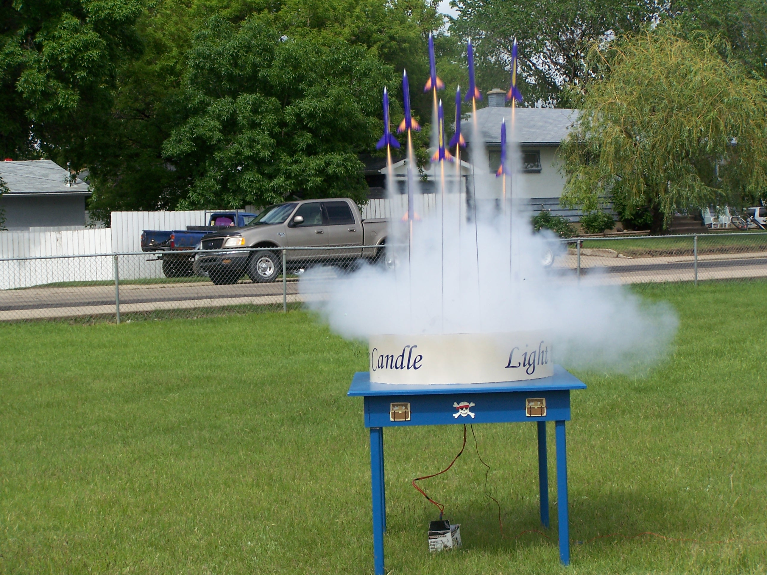 This is a launch pad that I built for my son's birthday party. It simultaniously launched eleven A motor rockets.