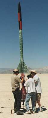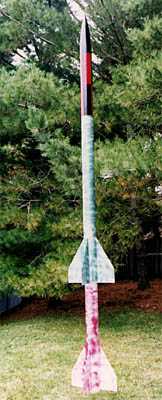 I was hurrying to finish this rocket in times for Balls '98 (August 1st) and so didn't finish the painting. Fiberglassing the entire body turned out to be more work than I expected and I didn't finish it as completely as my other rockets. It's unoffical name is The Unfinished Rocket.