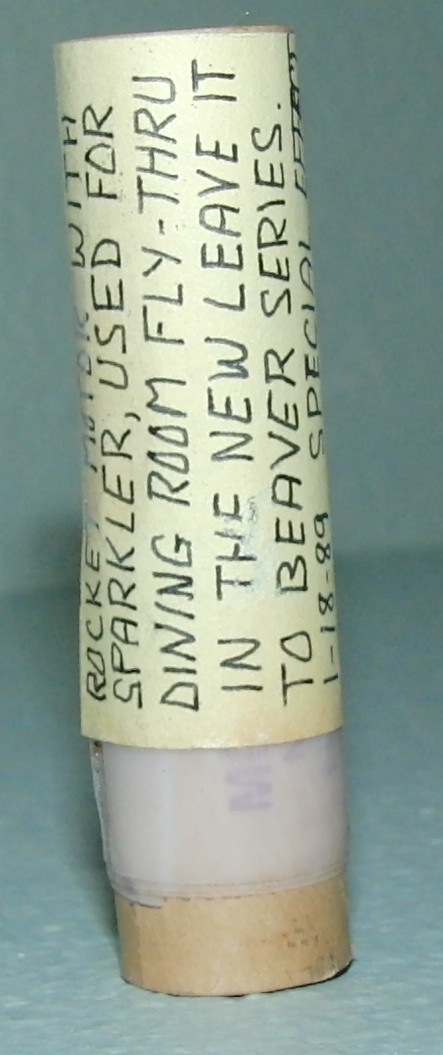 An episode of "The New Leave It To Beaver" portrayed children getting into trouble with fireworks. A model rocket with modified engines was used to simulate the fireworks. This is the rocket motor used in the filming of the show.