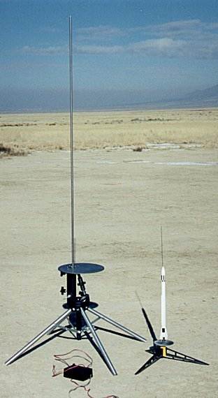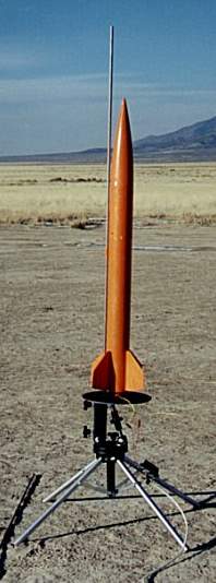 lays down almost 90 degrees. Feed the rocket onto the rod, then lift the rod