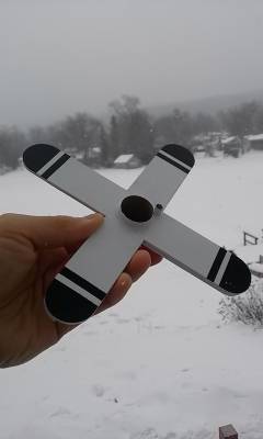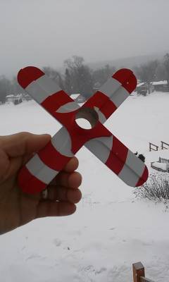 Looks like two popsicle sticks stuck together...kinda like the "helicopter" all of us made growing up; however it takes surprisingly big motors. Was quite a hoot to fly and very entertaining. I'll be bringing this to most of my launches. Added a spiral red pattern to one side and black stripe edging to the other...looks AWESOME!