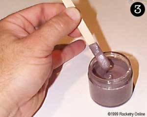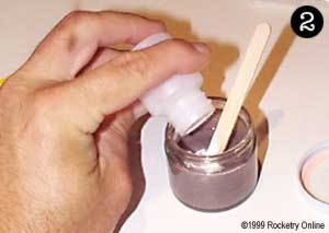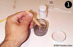 Photo 1 shows the first step of the mixing procedure, the thorough mixing of the base pyrogen dip. The instructions call for about one minute of mixing to thoroughly mix the base mixture. It appeared to have settled a bit before I had opened it, and since the pyrogen appears to have a heavy metallic content, the particles need good suspension in the mixture to work properly.