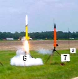 I have to tell you, even I wasn't prepared for the holeshot the Magnelite put on the competitor, but photos don't lie. While the competitor's igniter was still chuffing the I motor up to pressure, the Magnelite-equipped rocket was two feet up the launch rod!
