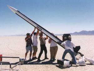 This rocket was a monster to manage all the way through the project, and launching it was no exception. It didn't fit in my suburban because the fins added too much size at the top, so I had a courier drive it up to Black Rock while I took the rest of the rockets and supplies in the suburban. Many of my co-workers came, most of them in a limo! They know how to travel in comfort.