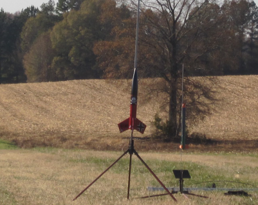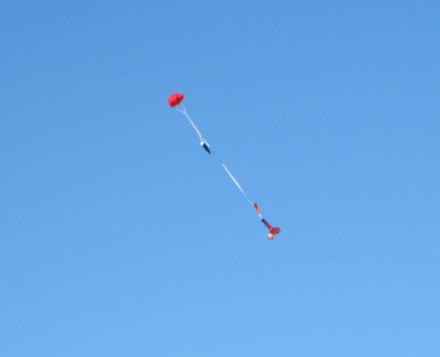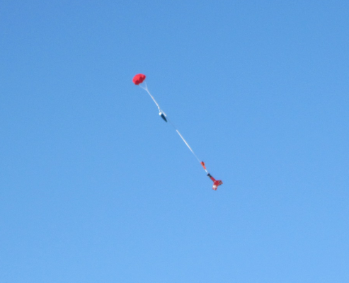 Single load Estes G64, Nice fight, slow off the rail, but looked very stable and up to around 600'. deployment on top and landed with in 20 yrds of pad.