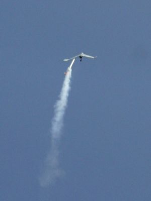 Out of six flights total, there was only one where the pod didn't completely separate from the glider. I blame this on a weak ejection charge. The pod ejected just far enough to allow the chute to deploy and the pod and glider came down together under chute unharmed.