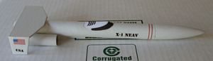 The N.E.A.V. X-1 from Cygnus Model Rocketry Company is a small futuristic design that reminds me of something that