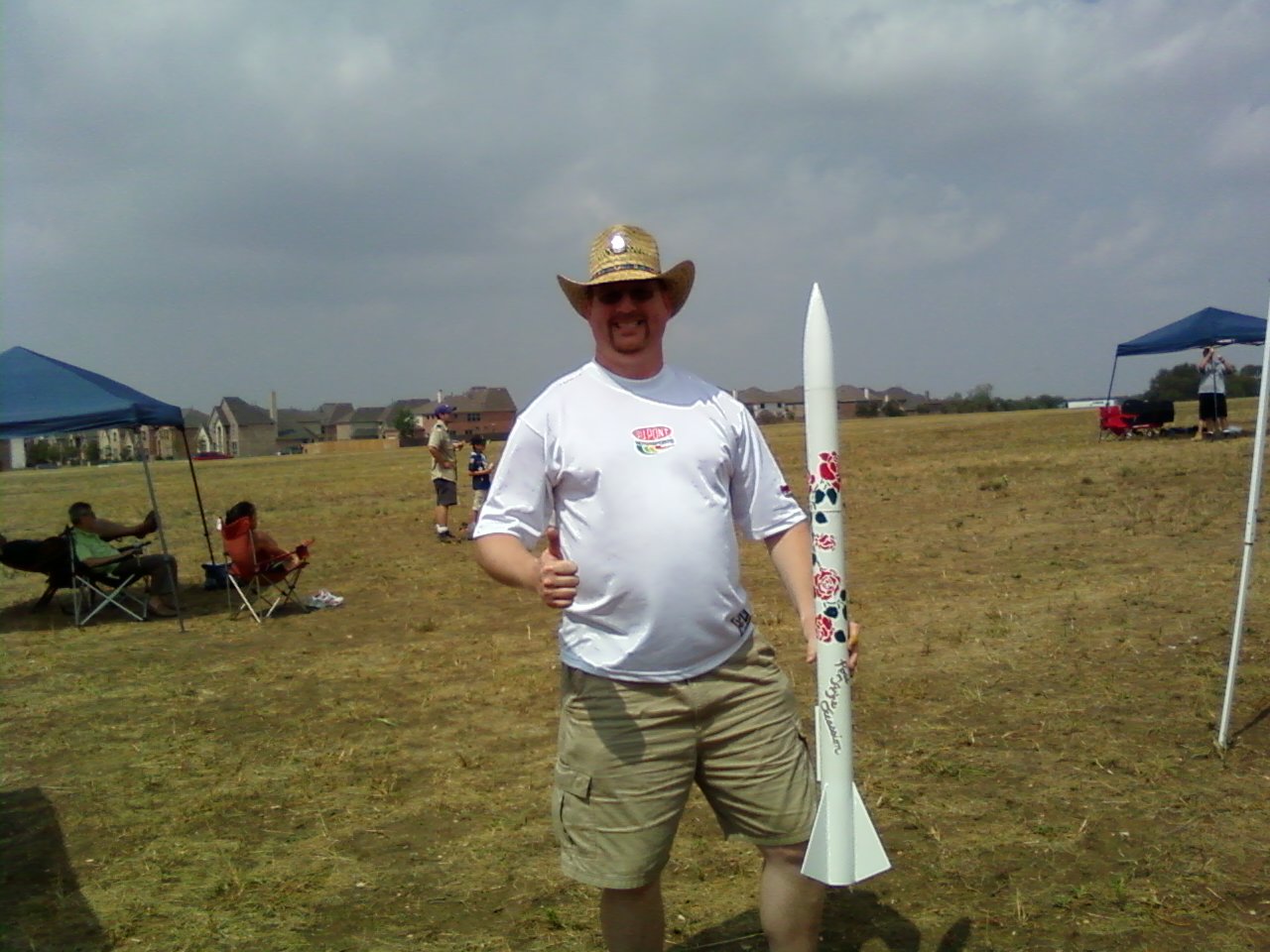 When I originally built the rocket I was looking for a catchy name and came up with "Rose to the Occasion". I painted the rocket a simple white and added a rose stencil, plus the name hand-painted in gold paint pen. Haven't seen that before or since.