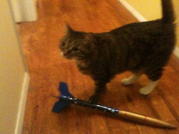 Roxie examines the rocket