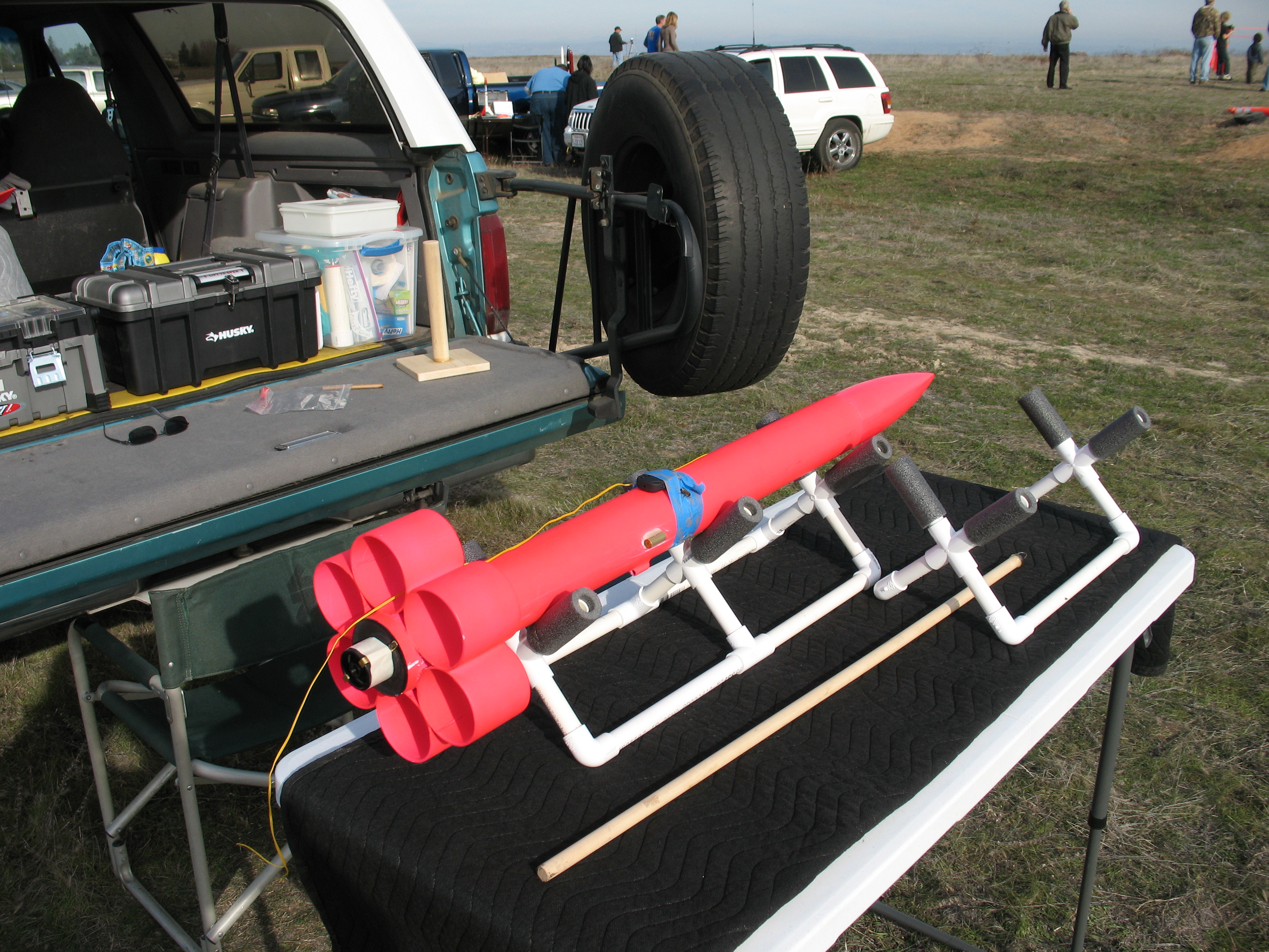 Larry Brand describes this rocket as an upscale of his Auracle 54 design which I have also built and named "Steppin' Razor". Therefore, this one is named "Steppin' Razor II".