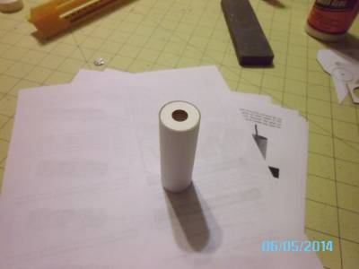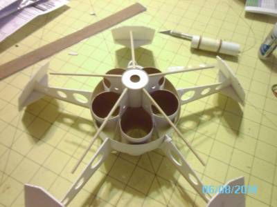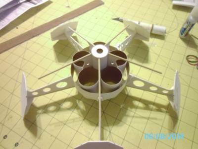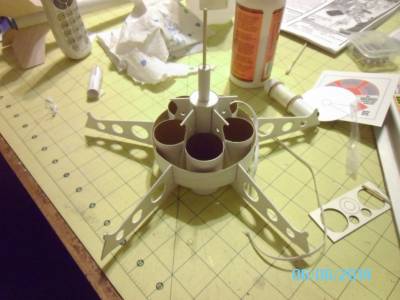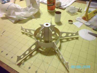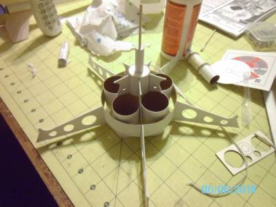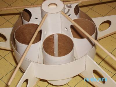 Lastly, the baffle assembly (1st and 2nd pic) gets glued inside the main body tube, with the big hole facing up. That will later be the mount for the "satellite dish" on the top of the model.