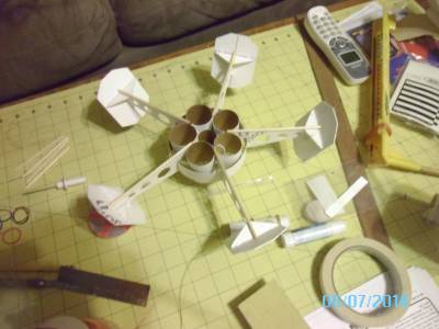 Ok, I am building the SEMROC clone of the old Centuri Satellite Killer rocket (http://www.spacemodeling.org/JimZ/cen5345.htm). It is a short, drag stabilized design, much like a saucer design. This is not an official kit, but I did purchase most of the parts from SEMROC that were still available as separate parts. Due to SEMROC's closing, I had to cut out my own fins and "solar panels", but everything else is SEMROC parts.