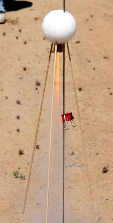 Oddball - 3 dia foam ball with three 1/8 dowels for legs...resembles other Sputnik type oddball designs.Flew nicely, spinning somewhat on the way up. Ejected motor and nosedived in...no damage.