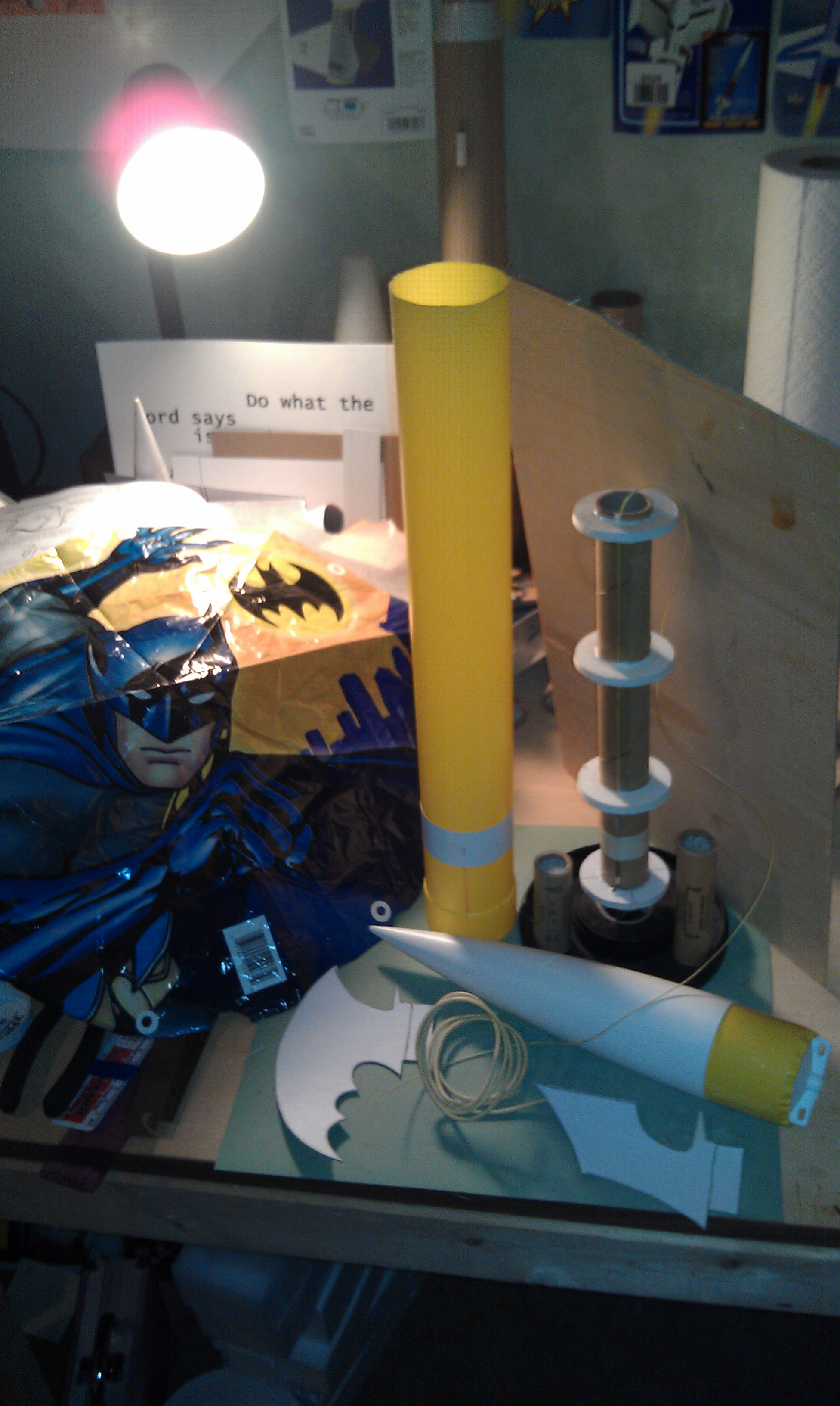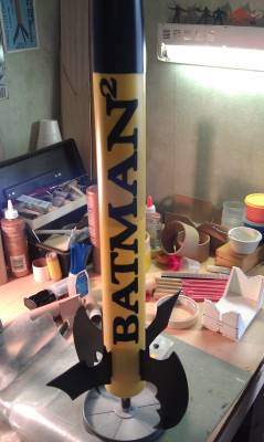 My inspiration came from my two grandsons.  The older one had a Batman themed birthday a couple of years ago and he gave me his deflated balloon.  While coloring with my youngest grandson in his Batman coloring book, I saw two different shaped wings.  The rest is history. Components Items I used, all of which I had lying around. Body Tube, yellow (crayon ...