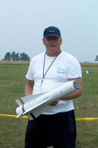 CG was checked, which was one BT in front of the CP located 12” from the rear. Then I realized that I forgot to put a pressure relief hole in the forward BT, so I broke out the Dremel and did a field drill with a 1/8" bit and located the hole 5” behind the end of the BT. My flight card was filled out and I headed to the rail. The card was turned in and I weighed the model. The nosecone came in at 1.5 lbs and the Body tube I found out later came in at 3.51 lbs without motor or chute. This brought it to over a 5 ½ lb rocket without motor and over 6 1/2 lb loaded and ready to go. The rocket was placed on the rail, the ignitor was installed and it was time for a launch.