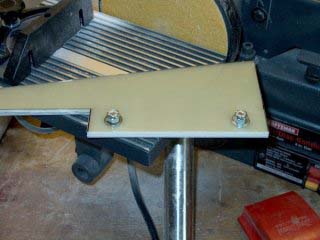 I worked on the Maverick fins next; all the fins were rough cut with a Dremel and asbestos cutting wheel, then I stacked the lower fin set and used a table sander to "fine" shape them. Next, I worked on the upper fin set. I started by flushing up the bottom root and rear, then used the table sander to shape the rear. Once this was done, I stacked them and drilled two 1/4" holes through the bottom root of the fin that resides inside the body tube. The fins were bolted together, then final sanded on the table sander. All fins were ready to go and I just need to round some edges.