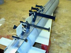 After I rounded the edges of the fins, I cut a small corner in the long fins tip to simulate the real ones. The motor mount was next; it was sanded and ready to go. I glued about 5" of 3/4" Nylon piston strap to the side of the motor mount using 30 minute epoxy and taped it down while it dried. This method is used on all the PML kits and shouldn’t be news to anyone who has built them.