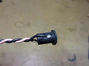 Back home I planned how I would assemble the switch. I needed to get a wire from the threaded insert at the flange end down to the narrow end without increasing the overall diameter of the Rawl nut so it would still pass through a round hole. I decided the best way to do this was to grind a channel into the rubber and one side of the integrated nut to allow the wire to be recessed. The other wire would connect to the other side of the integrated nut.