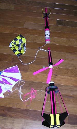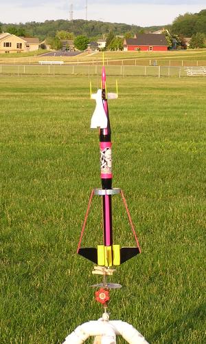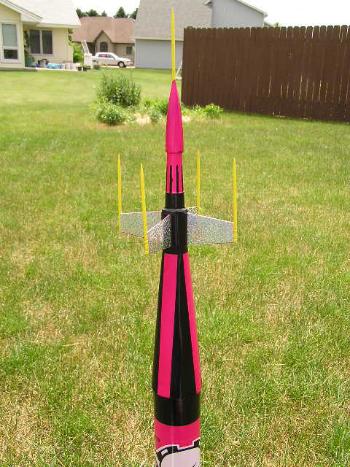 The Estes the Estes Cosmic Cobra nose cone really inspired the color scheme of this rocket I liked on the pink blades really contrasted with the black nose cone. I painted the entire rocket prior to adding the center ring and ring supports. I would highly recommend this approach.