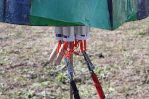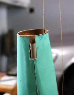 The epoxy on the weights got a day to dry and then the cone was tied into the elastic. That means that the Big Blue Vulcan is ready to take to the air!