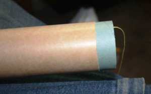 I took the occasion of letting the epoxy set up as an opportunity to tie a long piece of sewing elastic to the Kevlar®. The knot was fixed with some white glue.
