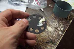 I quickly threw the post away and opened my big can of ethanol to try and clean up some of the mess while it was still semi-soft. That being done, I mixed another batch and quickly pained things into place.