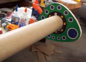 The super lug was trimmed to the length of the body tube and then a line was run the length of the tube. Yellow glue was applied along the line and the lug was pressed into place and held there to dry with the application of some tape.