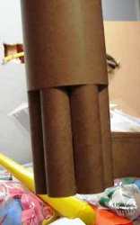 The laminated shrouds were quite a bit stiffer than the plain cardstock. This should help to strengthen things a bit but it makes rolling the main shroud more difficult. I decided to roll it as tightly as I could and let it sit that way for a week while I was to be out of town. I am glad to have finally found a use for some of those rubber band type shock cords that come with some kits!