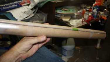 I wanted to use an internal launch lug on this rocket since doing so had served me well on my original Vulcan Clone and on my BT60 upscale. Looking around my shop, though, I had only 2 6" pieces of 1/4" lug. I tried using some MMX tubing but the BT2 would not fit, the BT2.5 was very tight and the BT3 had a lot of slop in it from being too loose. I was trying to remember from where I had obtained my previous 6" lengths with the plan of splicing sufficient lengths together to run the length of the tube when I realized that the loose fit of the BT3 over a long distance would not be a problem. With that in mind, I joined 2 pieces with masking tape.