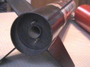 BaffleThis was my first large airframe rocket, so I wanted to try and imitate the Aerotech wad-less recovery design. Through a stroke of luck, I came across the Aerotech baffle shock chord attachment used in the G Force and used that on top of the 29 mm motor mount with a three-ply centering ring. Similar to the G Force, I also created a payload bay using a 10" section of 3.9" body tube. The payload bay was adapted to hold my home-made RCC2 Missile Works altimeter.