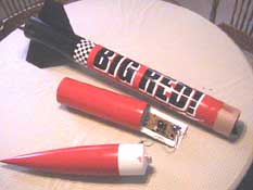 This rocket came to being after deciding not to buy the Aerotech G Force kit. After studying the plans for the G Force, I decided that I could make a scratch build that met my basic criteria for liking G Force. I wanted a tall rocket with a 4" airframe that would perform well on G64 and higher 29mm RMS hardware. Since I got back into model rocketry with my son who is now eight, I strove to make rockets that where at least as tall, if not taller than his height. This rocket is 64" tall and weighs in at 44 ounces with altimeter, but without motor and 'chute. "Big Red" seemed to be an appropriate name after completing the paint job. Component Description: The construction of this rocket follows closely the plans for the G Force.
