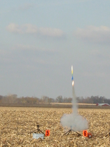 Flight two: F24-4w Almost identical to flight one. I did notice that the 12" thin mil parachute I used seem a touch small as it came down pretty fast. No damage though with the super soft corn field we use.